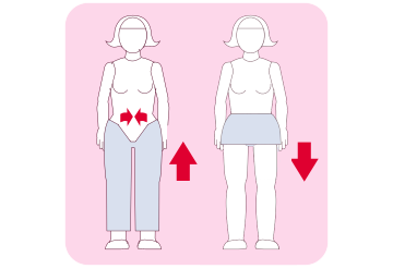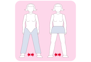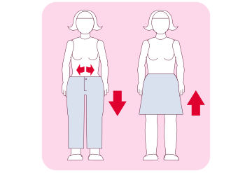 Open your pants and pull them down a bit or lift your skirt up at the front